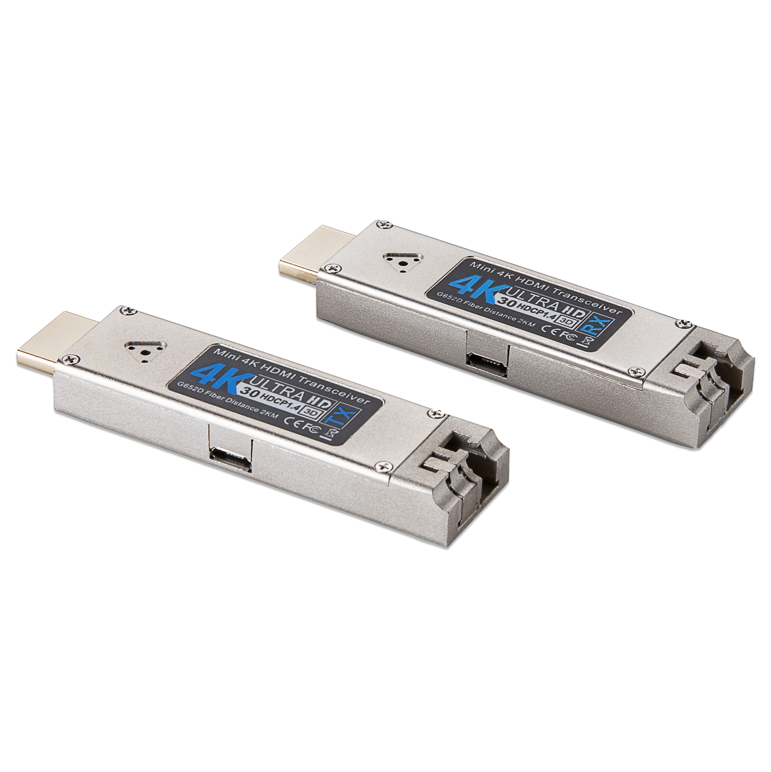 该款产品采用一芯光纤传输4K*2K*60Hz 视频信号,可实现无延时、无压缩、高质量的信号延长10公里。
