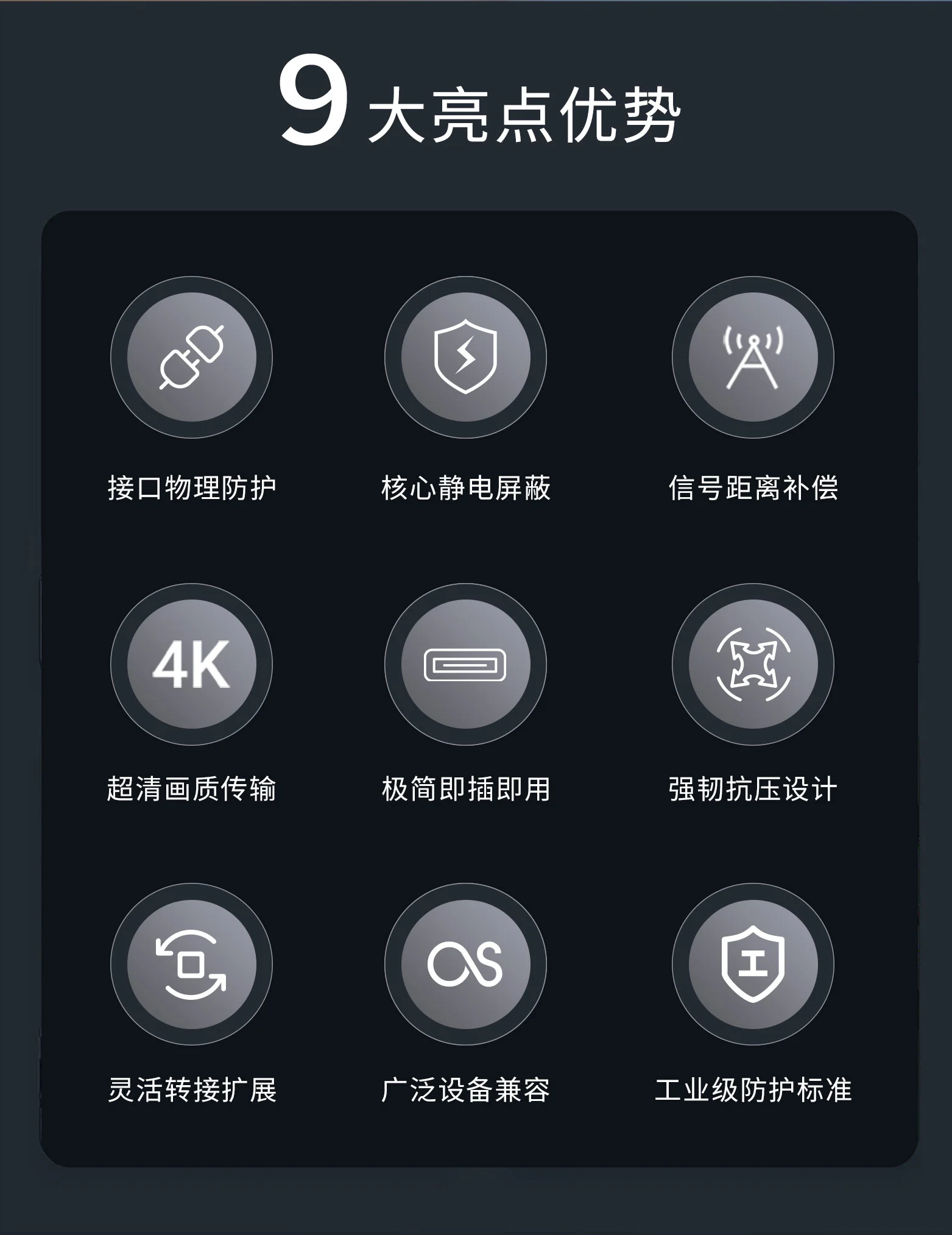 转接器、分配器、锁定器三核一体,信号无损转换,支持EDID物理锁定。
