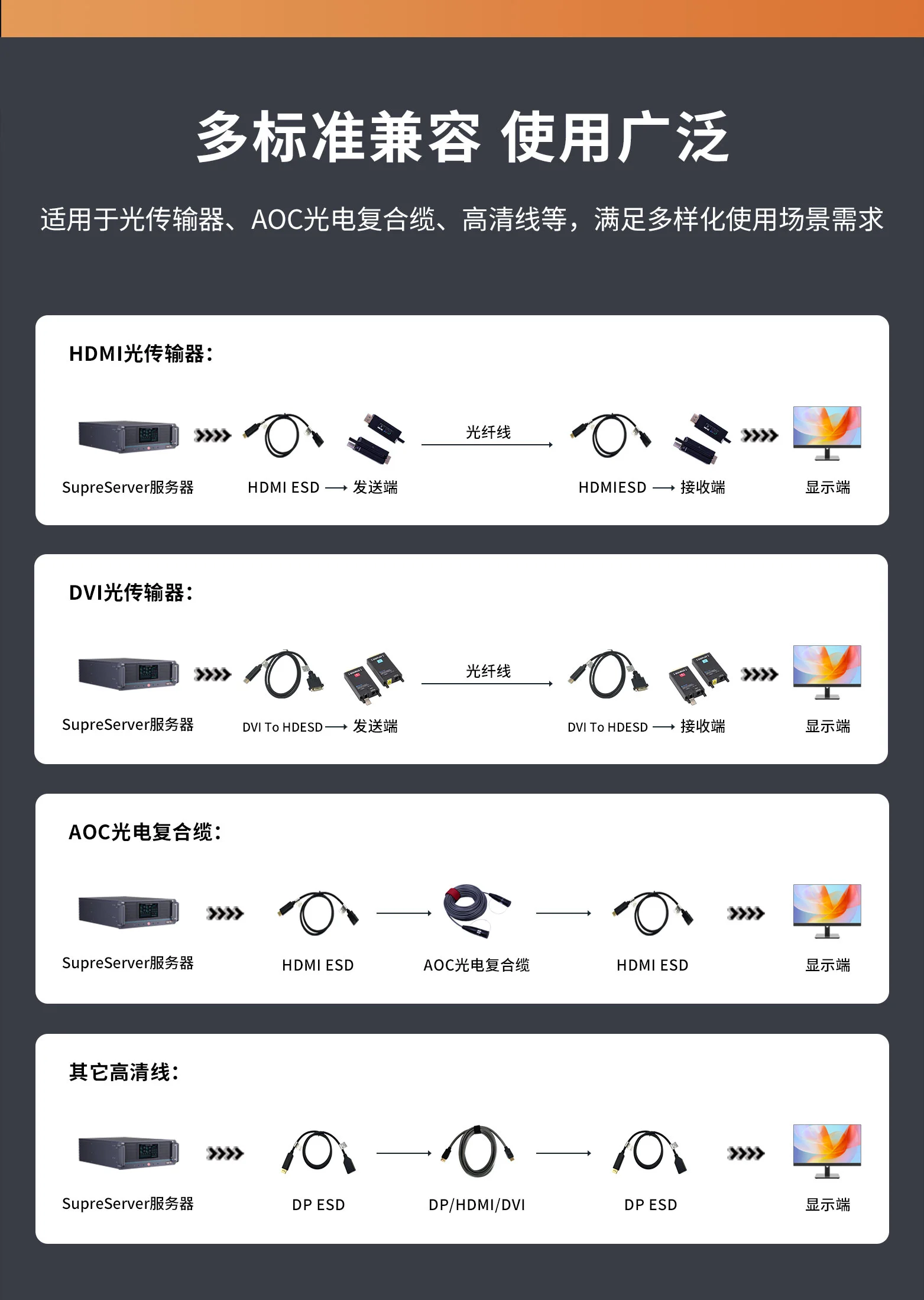该产品作为内置在SupreServer多媒体服务器中的专业设备板卡,其核心功能是将一路DP输入信号复制成多路完全相同的输出信号。